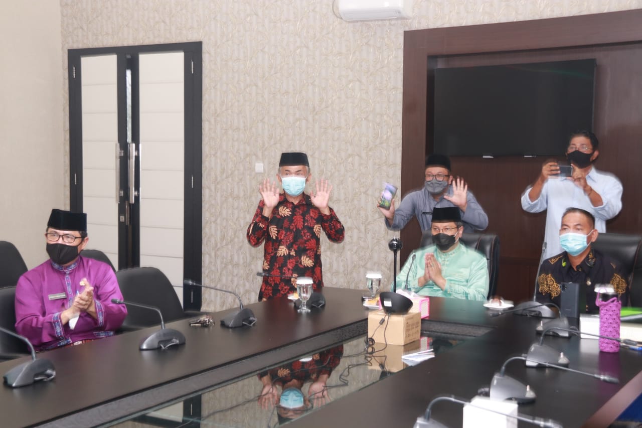 Penghargaan diterima secara simbolis oleh Sekretaris Daerah Kota Tanjungpinang, Teguh Ahmad Syafari, didampingi Kepala Dinas Lingkungan Hidup, Hendri, Camat, dan Lurah secara virtual melalui video conference dari ruang rapat Lt. III, Kantor Wali Kota Tanjungpinang, Jumat (23/10/2020).