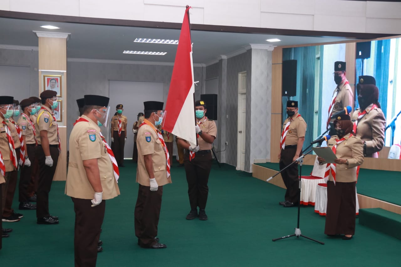 Serta pengurus Pramuka Peduli Penanggulangan Bencana Kota Tanjungpinang masa bakti 2020-2025, di aula Sultan Sulaiman Badrul Alamsyah, Lantai. III, Kantor Wali Kota Tanjungpinang, Kepulauan Riau, Senin (26/10/2020).