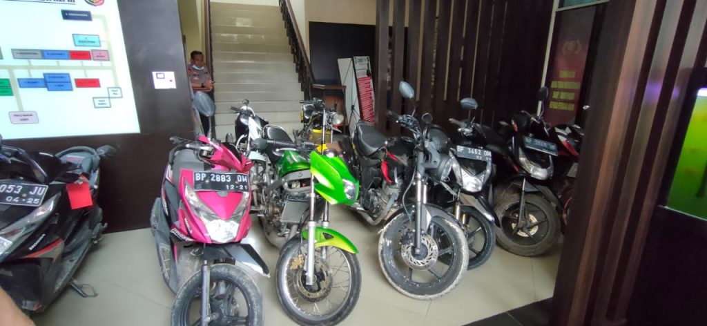 “Sebanyak 10 (sepuluh) barang bukti sepeda motor berbagai merk turut serta diamankan,” ucap Wadir Reskrimum Polda Kepri AKBP Ruslan Abdul Rasyid S.IK., M.H., pada Selasa (3/11/20).