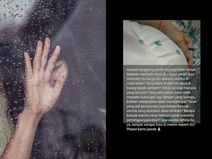 “Apakah tanggung jawab seorang lelaki hanya sebatas menikahi terus dtinggal pergi? Apa serendah itu harga diri seorang wanita di mata lelaki? Yang habis dinikmati terus dibuang kayak sampah? terus cari lagi mangsa lainnya?,” tulis wanita tersebut.