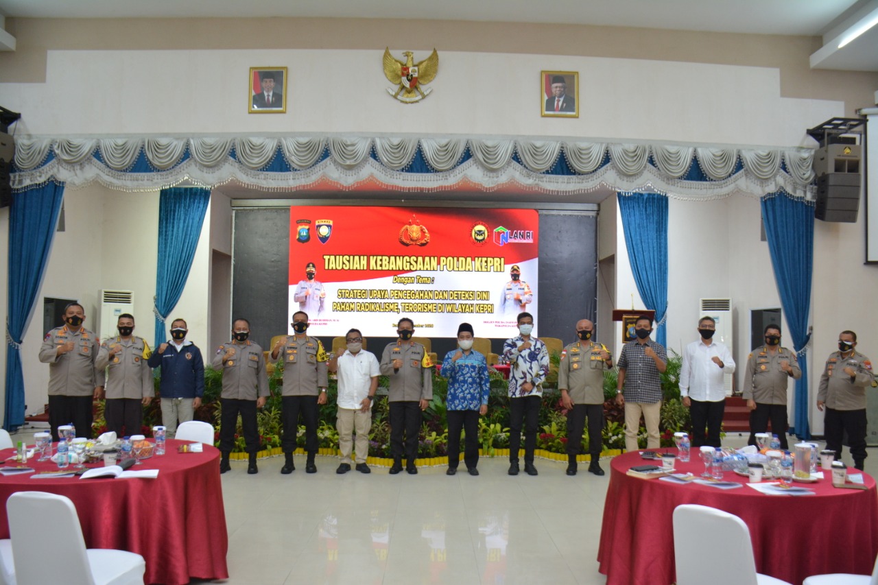 Batam, inikepri.com – Polda Kepulauan Riau menggelar tausiah kebangsaan dengan mengangkat tema Strategi Upaya Pencegahan dan Deteksi Dini Paham Radikalisme, Terorisme di Wilayah Kepri, Rabu (4/11/20).