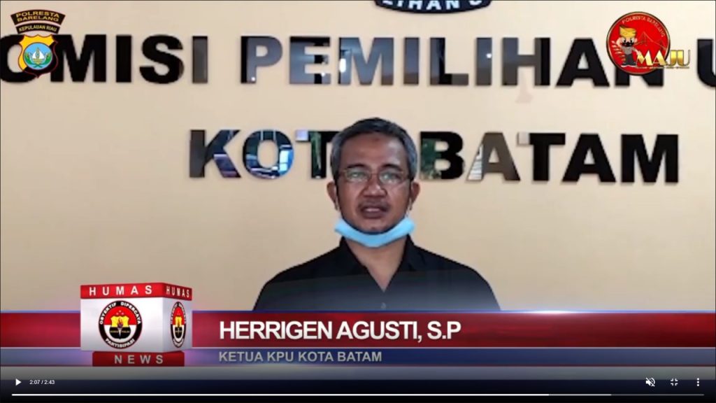 Sementara itu, Ketua KPU juga mengimbau kepada masyarakat Kota Batam untuk menggunakan hak pilihnya menentukan Walikota dan Wakil Walikota Batam, Gubernur dan Wakil Gubernur Provinsi Kepulauan Riau. Mari datang ke TPS dan terapkan protokol kesehatan semoga kita selalu dilindungi dan diberikan kesehatan,” jelas ketua KPU Batam.