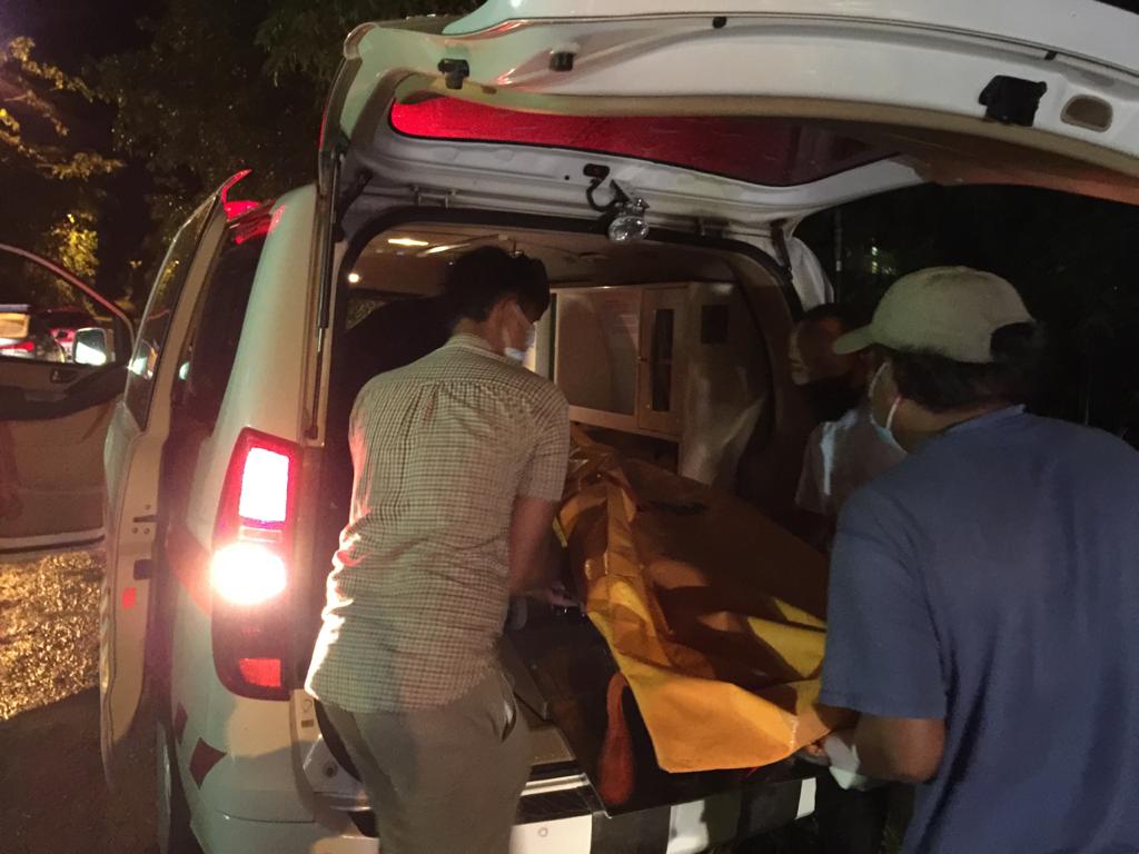 Sampai di lokasi ditemukan 1 orang laki-laki dalam posisi tergantung di atas pohon, dengan menggunakan Tali Tambang dengan panjang 540, adapun keadaan laki laki tersebut yaitu dalam keadaan tubuh sudah kaku, ikat pinggang warna hitam, baju yg digunakan warna biru merek Polo, dan bercelana jeans.