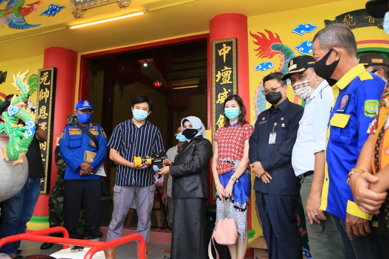 INIKEPRI.COM – Wali Kota Tanjungpinang Rahma menyerahkan bantuan alat pemadam kebakaran kepada Yayasan Cetiya Tridharma Tirta Sasana, di Pelantar Nusantara II, Jalan Potong Lembu, Kelurahan Kemboja, Kota Tanjungpinang, Kepulauan Riau, Kamis (19/11/2020).