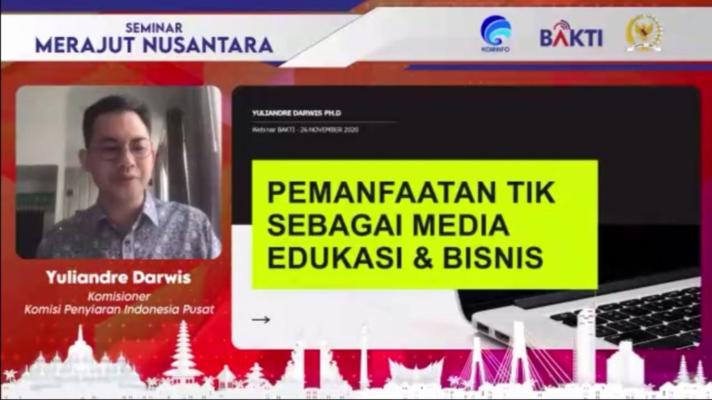 Turut tampil sebagai pembicara pada webinar ini yakni, Yuliandre Darwis, Komisioner Komisi Penyiaran Indonesia Pusat dan Donal Pangihutan, Ketua Dewan TIK Kota Batam. (RD)