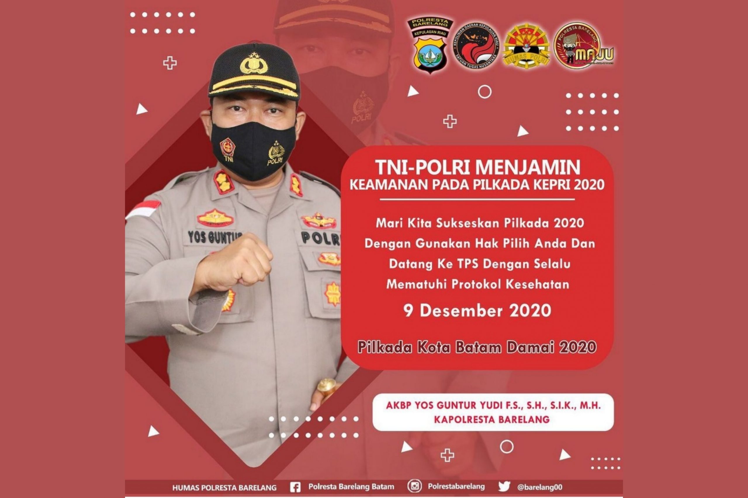 INIKEPRI.COM – Kapolresta Barelang Polda Kepri AKBP Yos Guntur SIK menghimbau masyarakat di wilayah hukum Kota Batam Provinsi Kepri agar menggunakan hak pilihnya pada Pemilihan Kepala Daerah (Pilkada) Kota Batam Provinsi Kepri 2020.