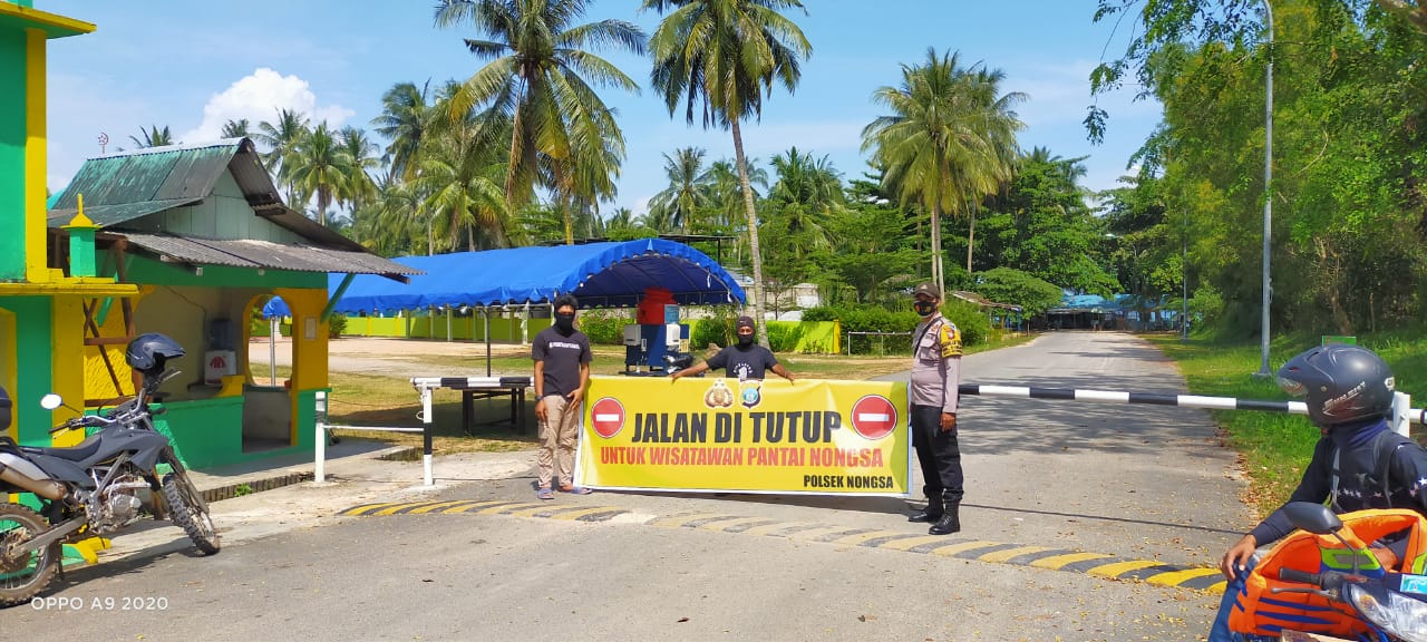 Berkaitan dengan hal itu Polsek Nongsa melaksanakan pemasangan spanduk penutupan sementara tempat wisata pantai Nongsa dalam rangka perayaan malam tahun varu 2021 bertempat di Pintu Masuk Pantai Nongsa, Kelurahan Sambau, Kecamatan Nongsa, Kota Batam, Kamis (31/12/2020).