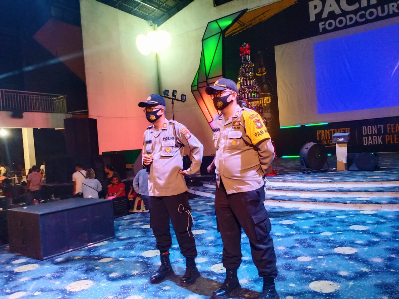 Dengan tegas Tim melaksanakan pembubaran pengunjung yang berasa di Pacific Foodcourt dan menghimbau pengunjung untuk merayakan malam tahun baru kali ini dirumah saja .