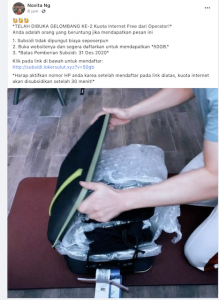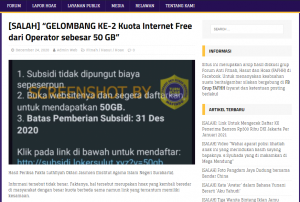 Pada Desember 2020 yang lalu, narasi yang sama juga telah beredar di masyarakat. Bedanya, saat itu dalam narasinya, disebutkan itu adalah gelombang kedua pembagian kuota internet.