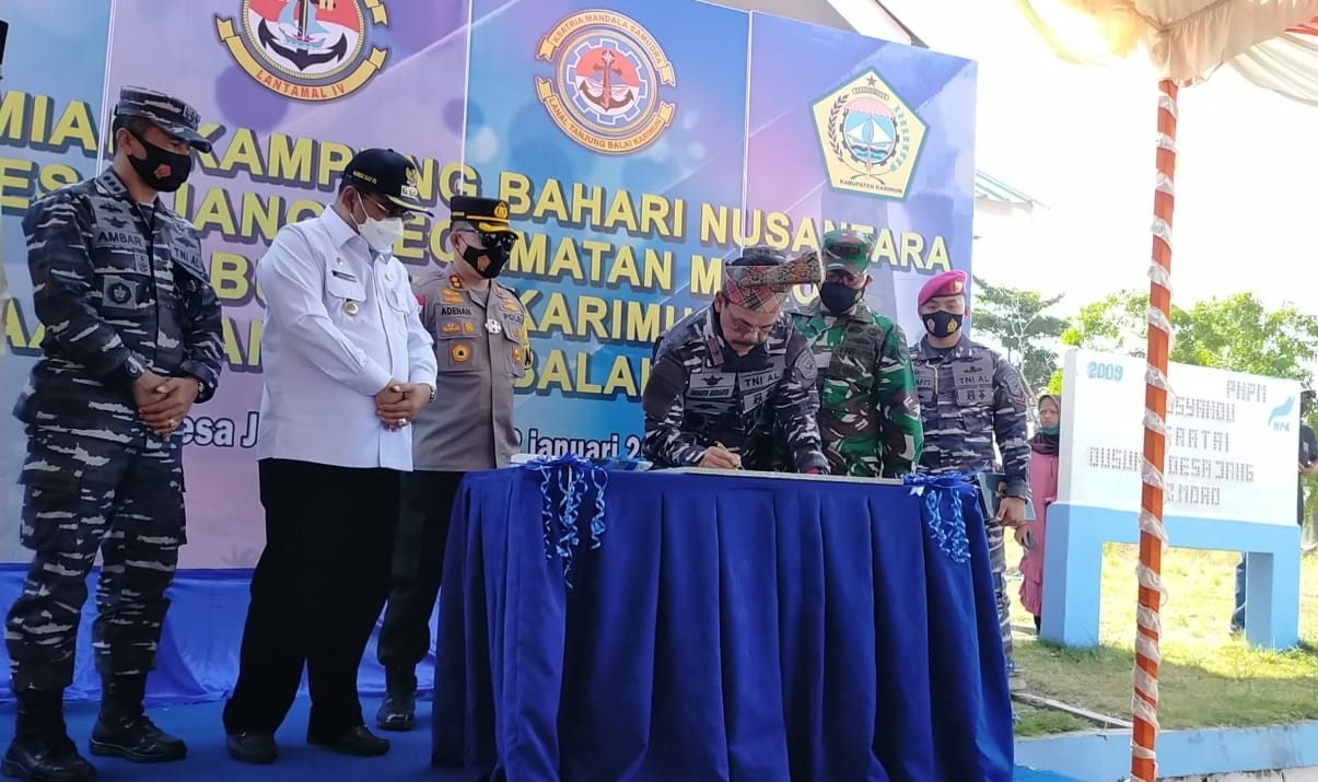 INIKEPRI.COM – Komandan Pangkalan Utama TNI Angkatan Laut IV (Danlantamal IV) Tanjungpinang, Laksamana Pertama TNI Indarto Budiarto, S.E., M.Han., secara resmi mensahkan Kampung Bahari Nusantara (KBN) binaan Pangkalan TNI Angkatan Laut Tanjung Balai Karimun (Lanal TBK) pada Jumat (22/1/2021), guna menciptakan masyarakat yang berbasis kemaritiman.
