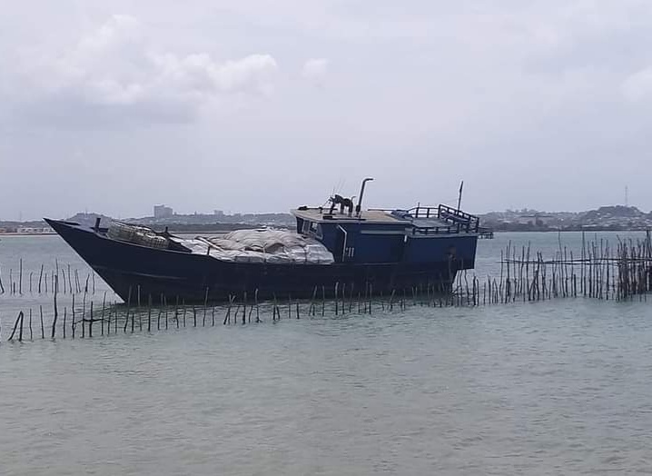Akibat pengejaran yang dilakukan oleh tim patroli BC, kapal kayu penuh muatan yang ditutupi terpal putih itu kandas di sekitar perairan Bakau Serip Nongsa, Kota Batam.