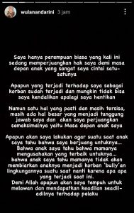 “Apapun akan saya lakukan agar suatu saat anak saya tahu bahwa saya berjuang untuknya. Demi Allah, apapun akan saya tempuh untuk melawan dan mendapatkan keadilan seadil-adilnya terhadap pelaku,” sambungnya di instastory.