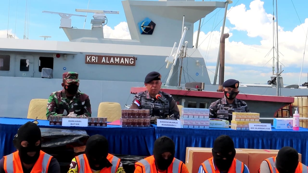 1.673 rokok ilegal tanpa cukai yang diangkut oleh kapal kargo kayu KM Surya Sampurna, berhasil digagalkan oleh KRI Alamang-644 dibawah kendali Guskamla Koarmada I.