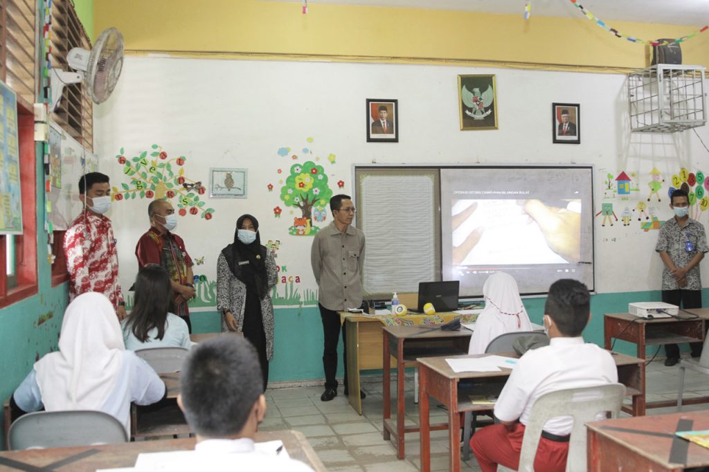 INIKEPRI.COM – Wakil Wali Kota Batam Amsakar Achmad meninjau tiga sekolah di Kecamatan Batam Kota dan Kecamatan Lubuk Baja memastikan Kegiatan Belajar Mengajar (KBM) tatap muka dilaksanakan dengan menerapkan protokol kesehatan (prokes) pencegahan penyebaran Covid-19, Kamis (1/4/2021) pagi.