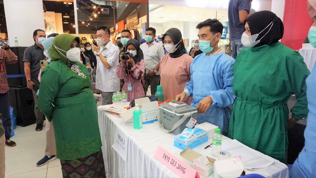 INIKEPRI.COM – Wali Kota Tanjungpinang, Rahma memantau jalannya vaksinasi bagi pekerja perbankan dan pelaku pariwisata, yang digelar di TCC Mall Tanjungpinang, Kepulauan Riau, Jumat (2/4/2021).