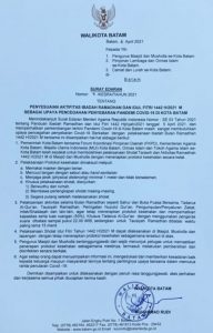 Wakil Wali Kota Batam, Amsakar Achmad, menegaskan, melalui surat edaran yang ditandatangani Wali Kota Batam, Muhammad Rudi, pada 6 April 2021, ada enam poin yang disampaikan. Surat edaran tersebut ditujukan kepada pengurus masjid, musala, ormas, camat, lurah, dan masyarakat secara umumnya.