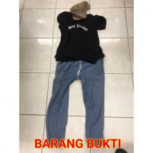 Berhasil di amankan barang bukti berupa rekaman CCTV, 1 helai baju kaos warna hitam, 1 helai celana jeans warna biru dan 1 buah topi merk Gucci.