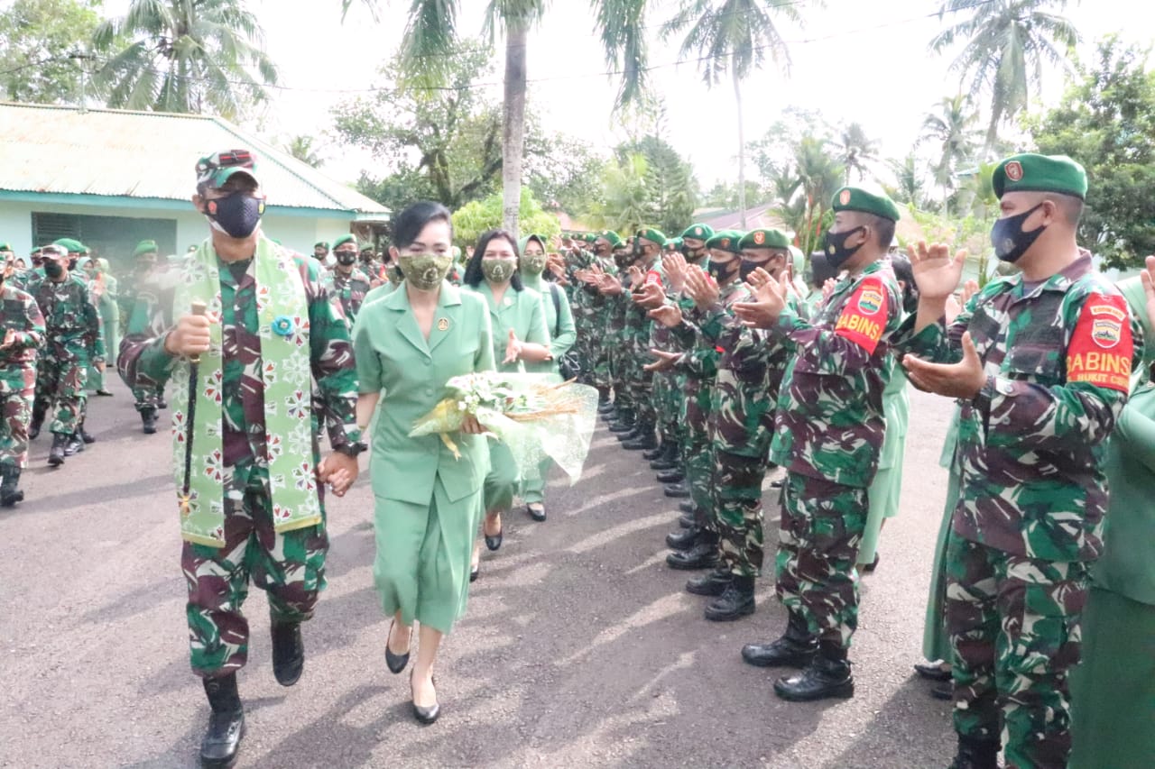 Yel-yel dari 320 satuan prajurit Kodim 0315/Bintan dan prajurit Komando Rayon Militer (Koramil) terdengar sangat lantang saat Danrem 033/WP dan istri beserta rombongan menginjakkan kaki memasuki Markas Komando (Mako) Kodim 0315/Bintan. Dengan wajah tampak bahagia dan berseri, Danrem 033/WP dan istri beserta rombongan mulai memasuki Makodim Bintan.
