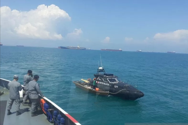 Kepala Kantor Kamla Zona Maritim Barat Laksma Bakamla Hadi Pranoto langsung menjemput dua nelayan Kota Batam Abdul Rahman dan Riyandi yang diantar Agensi Penguatkuasaan Maritim Malaysia (APMM) di perairan Malaysia, Senin 26 April 2021.