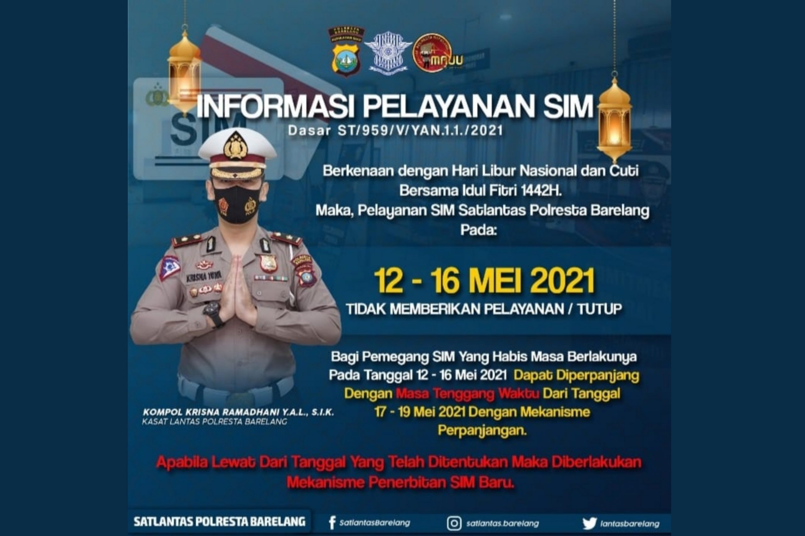 Disampaikan Krisna, di dalam telegram itu disebutkan bahwa, Polri akan menyiapkan dispensasi bagi masyarakat yang masa berlaku SIM-nya habis pada tanggal tersebut. Dispensasi yang diberikan berupa perpanjangan masa tenggang.