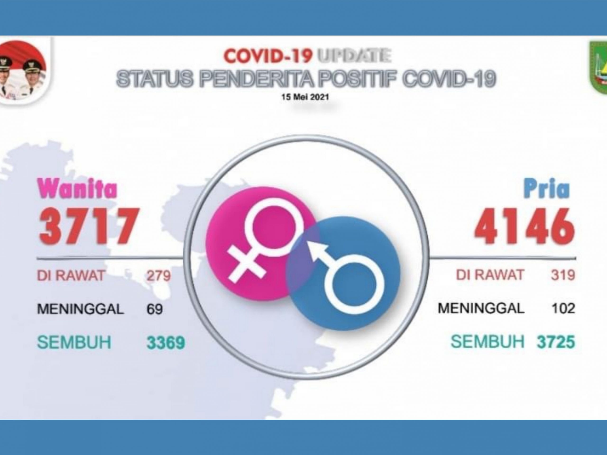 Sedangkan total jumlah laki-laki penderita Covid-19 adalah 4.146 orang, dengan perincian: 319 dirawat, 102 meninggal, dan 3.725 sembuh.