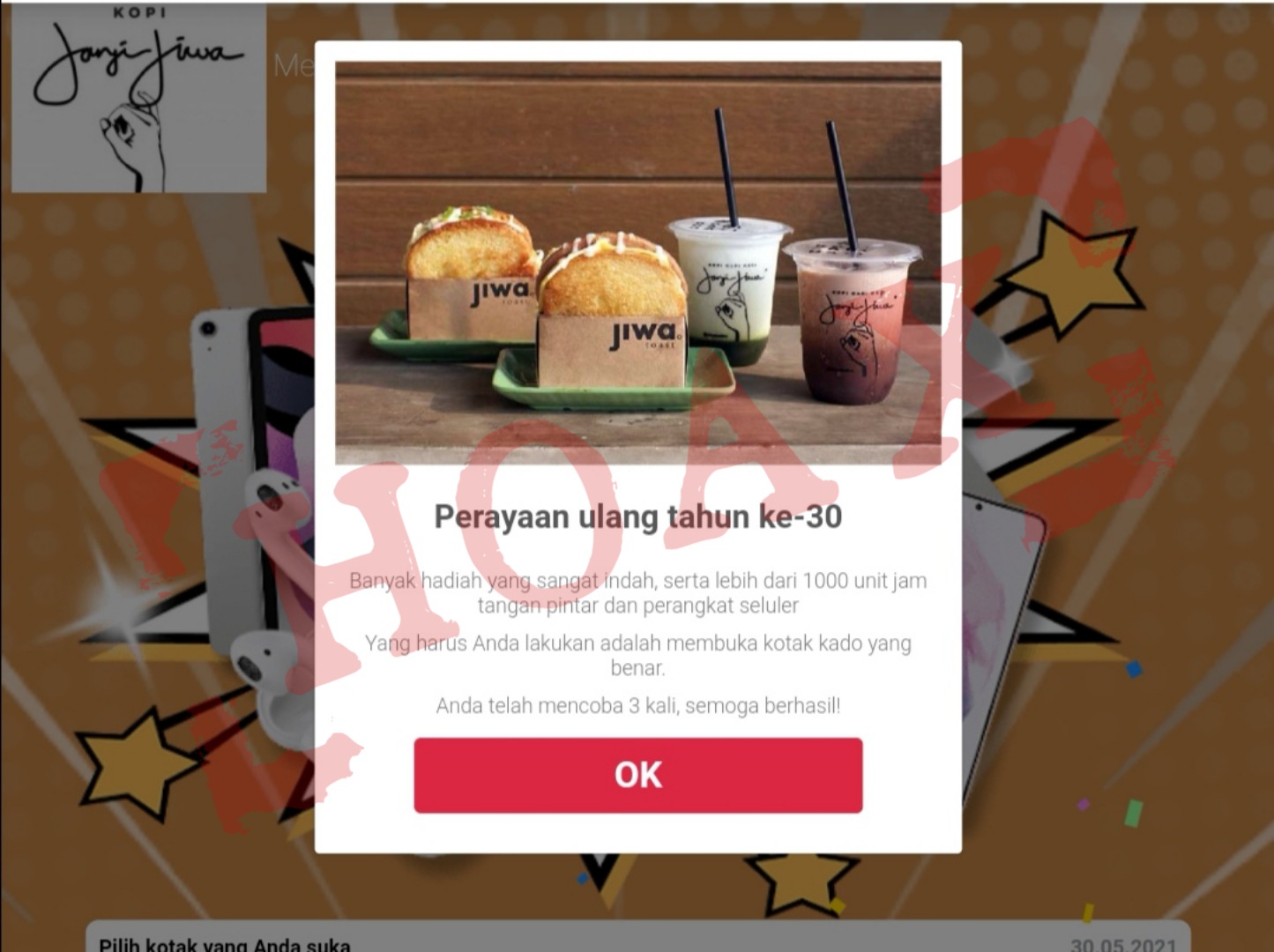 [HOAX] Kopi Janji Jiwa Bagikan Hadiah di Ultah ke-30 Tahun