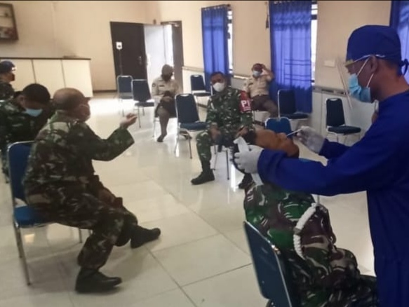 “Kegiatan ini bertujuan untuk peningkatan kesiap-siagaan dan kewaspadaan adanya tiga varian baru virus Corona yang masuk ke Indonesia dan penularan yang relatif tinggi,” kata Letkol Laut (P) Yovan.