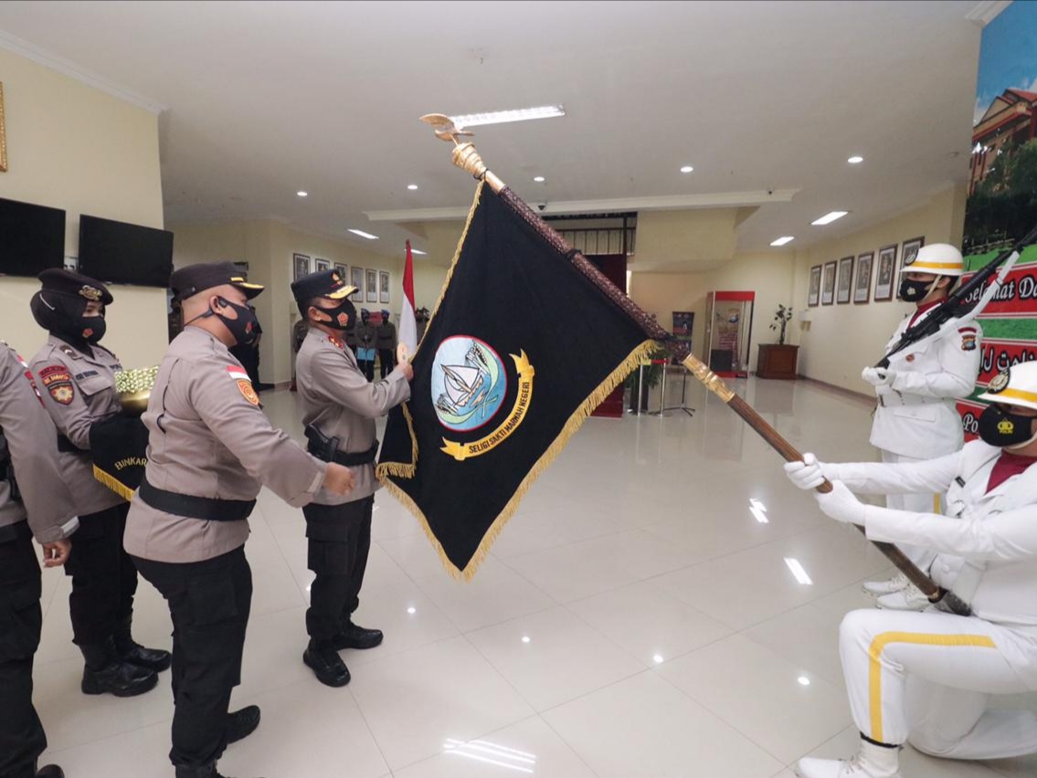 “Pagi ini kita melaksanakan kegiatan upacara pencucian Pataka Polda Kepri Seligi Sakti Marwah Negeri. Ini merupakan salah satu rangkaian Hari Bhayangkara ke-75 tahun 2021,” kata Kapolda Irjen Aris.