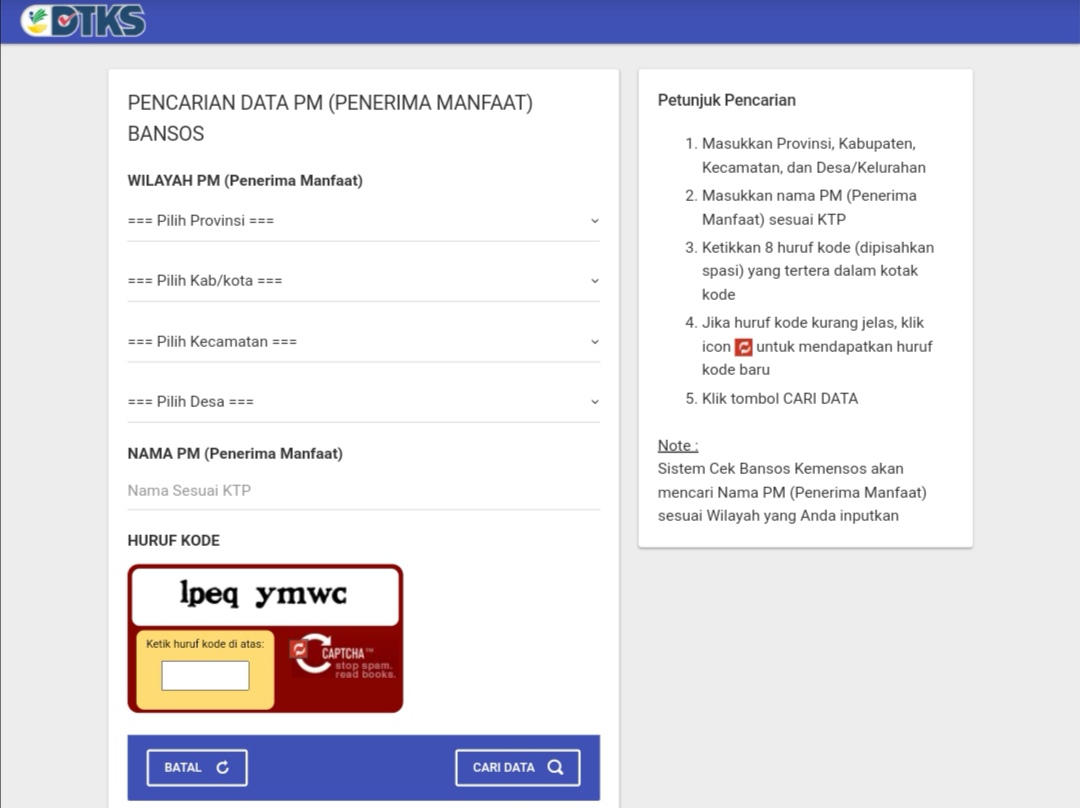 Berikut adalah cara cek penerima BST di cekbansos.kemensos.go.id: