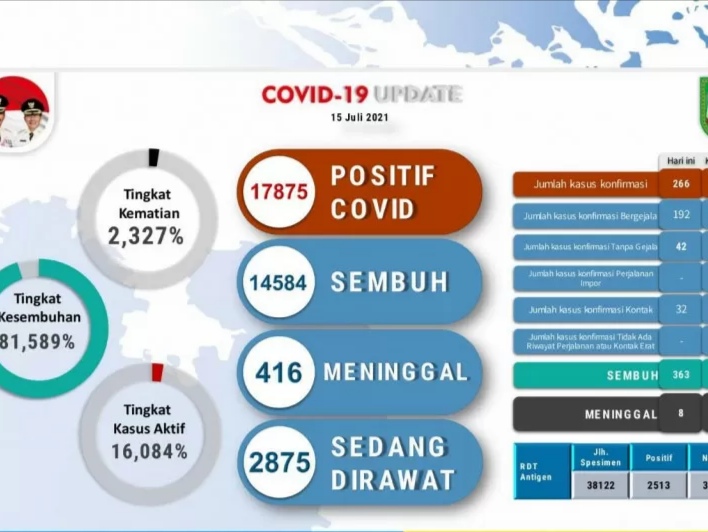 “Jumlah kasus konfirmasi hari ini 266 orang dan secara kumulatif menjadi 17.875 orang,” demikian data yang dibagikan Juru Bicara Satgas Penanganan COVID-19 Kota Batam Azril Apriansyah di Batam, Kamis 15 Juli 2021.