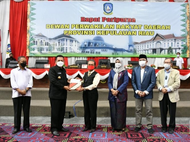 “Untuk mencapai komitmen tersebut di atas maka peran DPRD sebagai mitra kerja pemerintah daerah sangat diperlukan untuk mengawal dan mengawasi pengelolaan keuangan secara lebih berdaya guna dan berhasil guna” kata Gubernur Ansar pada Rapat Paripurna Laporan Akhir Banggar DPRD Provinsi Kepri terhadap Hasil Pembahasan Ranperda LPP APBD TA. 2020 Sekaligus Persetujuan DPRD Provinsi Kepri Untuk Ditetapkan Menjadi Perda di Ruang Rapat Sidang Utama DPRD Provinsi Kepri, Dompak, Rabu (28/7/2021).