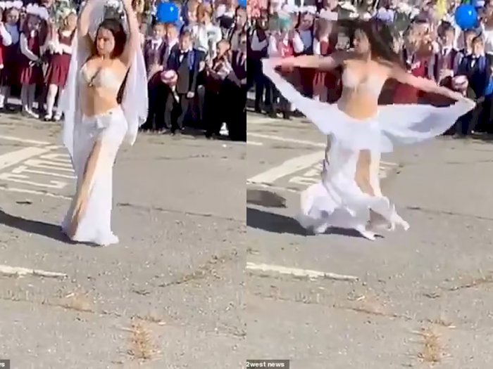 Dia pun melakukan tarian perut seksi di hadapan murid-muridnya, di sebuah sekolah di Khabarovsk, tenggara Rusia.
