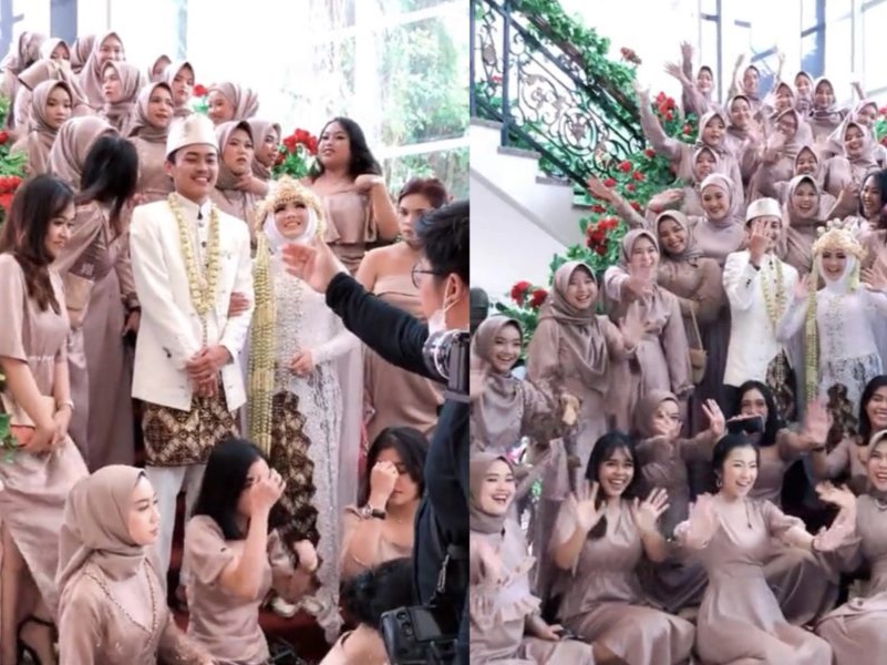 Potret para pendamping pengantin direkam dan diunggah melalui akun TikTok @guruhgumelar123. Video itu menampilkan tim dokumentasi pernikahan tengah mengarahkan pengantin bersama bridesmaidsnya untuk melakukan sesi pemotretan.