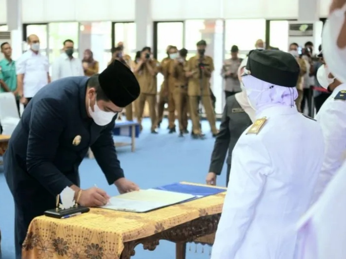 INIKEPRI.COM – Sebanyak 20 aparatur sipil negara (ASN) dilantik Plt Bupati Bintan, Kepulauan Riau (Kepri) Roby Kurniawan menjadi Penjabat (Pj) Kepala Desa (Kades), setelah kepala desa sebelumnya dinyatakan habis masa jabatan.
