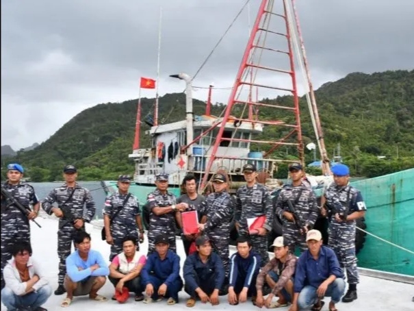 Serta kapal ikan asing berbendera Vietnam tersebut, diduga melakukan aktivitas penangkapan ikan dengan menggunakan alat tangkap yang dilarang yaitu menggunakan trawl atau pukau harimau yang diduga melanggar pasal 9 jo pasal 28 UU RI Nomor 45 tahu 2009 tentang perikanan.