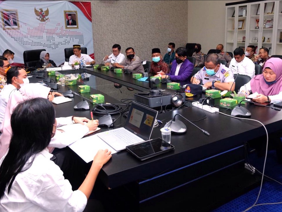 INIKEPRI.COM – Pemerintah Kota Tanjungpinang menggelar rapat koordinasi Satgas Kota Tanjungpinang terkait penanganan wabah Penyakit Mulut dan Kuku (PMK), di ruang rapat Engku Putri Raja Hamidah, kantor wali kota Tanjungpinang, Kepri, Rabu (22/6/2022).