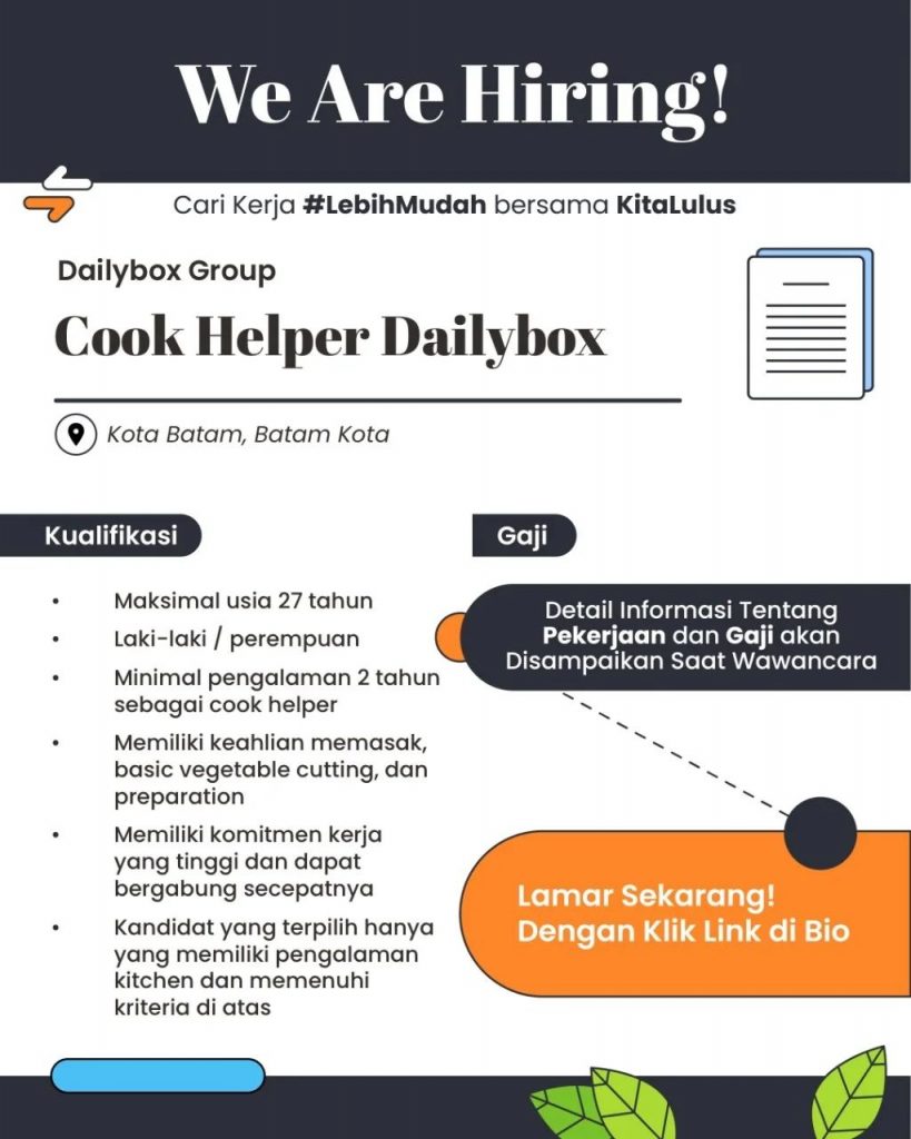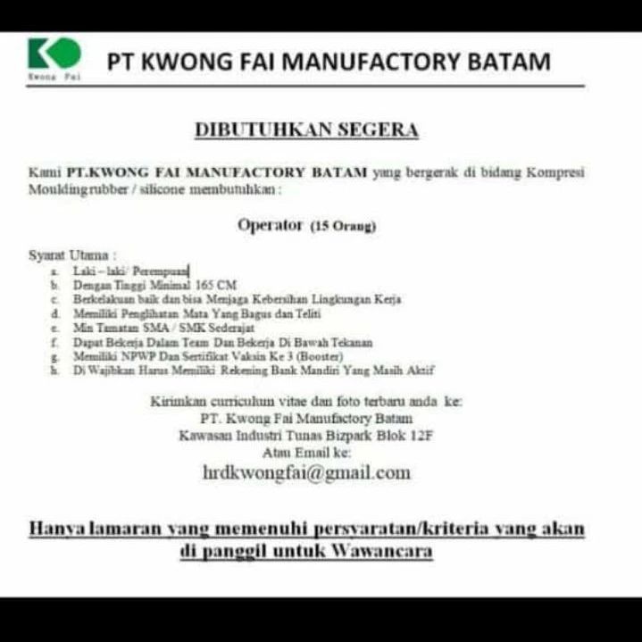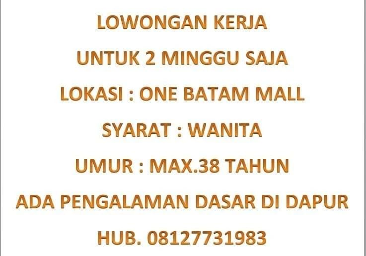 INIKEPRI.COM – Berikut ini lowongan pekerjaan yang ada di kota Batam, Kepulauan Riau.