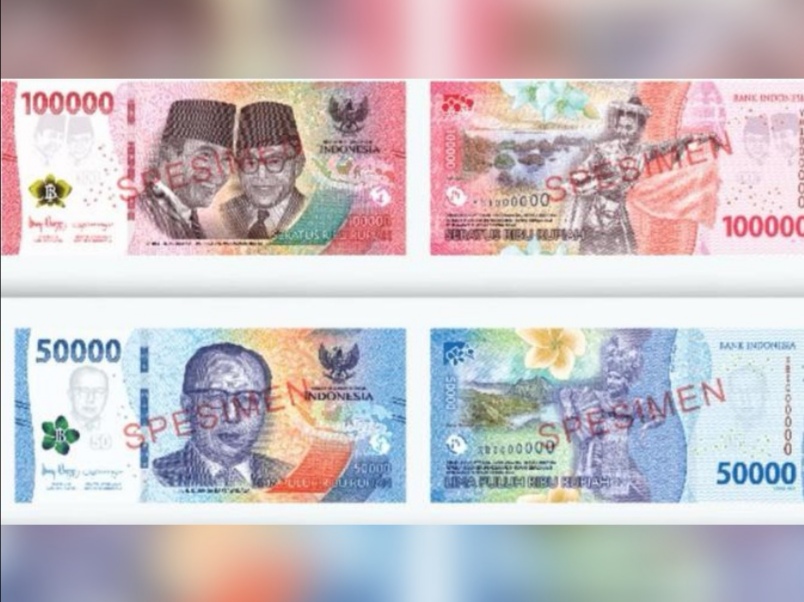 - Gambar pahlawan nasional Dr. (H.C.) Ir. Soekarno dan Drs. Mohammad Hatta sebagai gambar utama pada bagian depan rupiah kertas NKRI dengan pecahan Rp 100.000