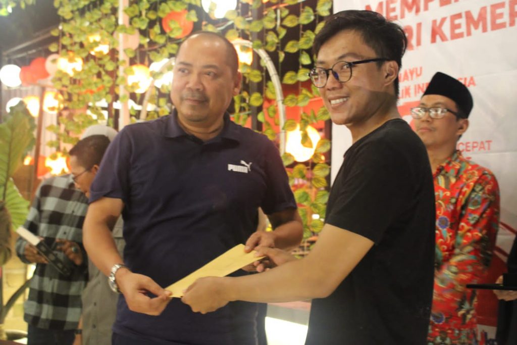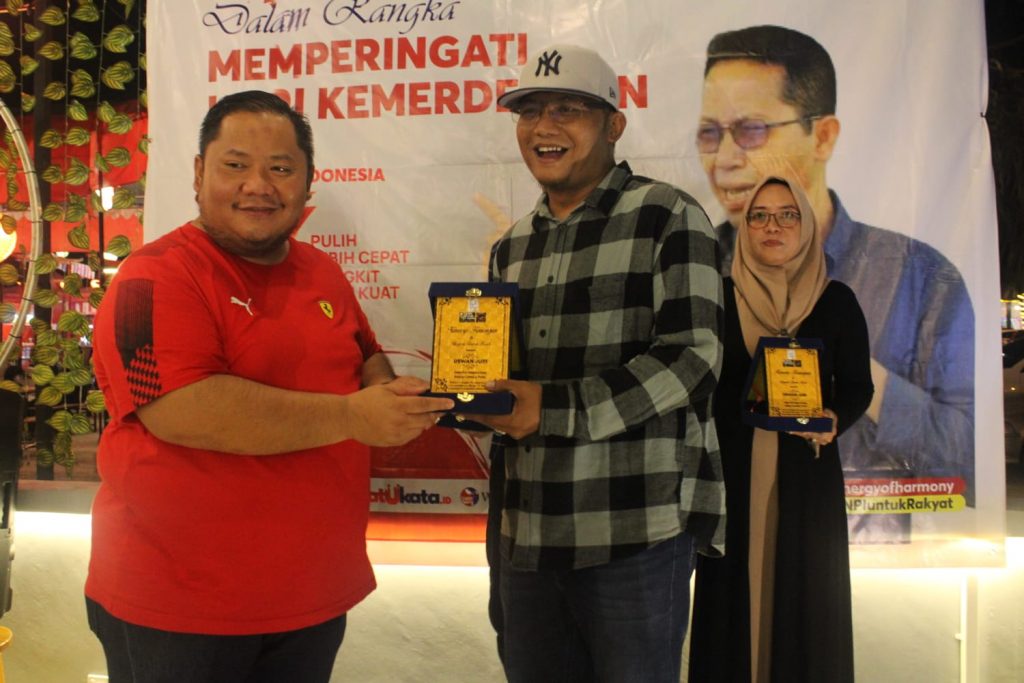 Korwil Himpunan Melayu Raya yang juga owner Tunjuk Langit Coffee and Resto memberikan plakat kenang-kenangan kepada juri Ramon Damora. Foto: INIKEPRI.COM