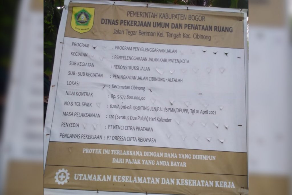 PT Nenci Citra Pratama mengerjakan pekerjaan rekonstruksi jalan Cibinong-Alfalah, dengan nilai Rp 5,577,800,000. Belum lama selesai, jalan itu kemudian sudah ditemukan retak.