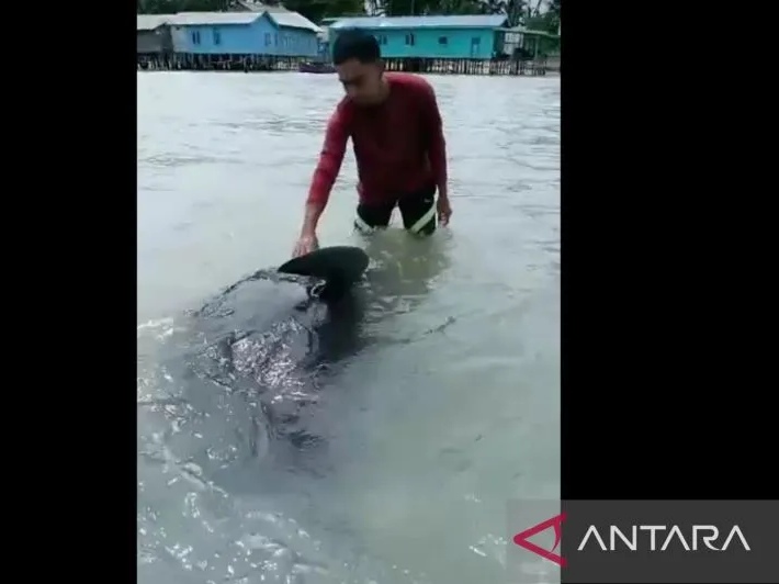 Warga Selamatkan Paus Terdampar di Pulau Laut Natuna