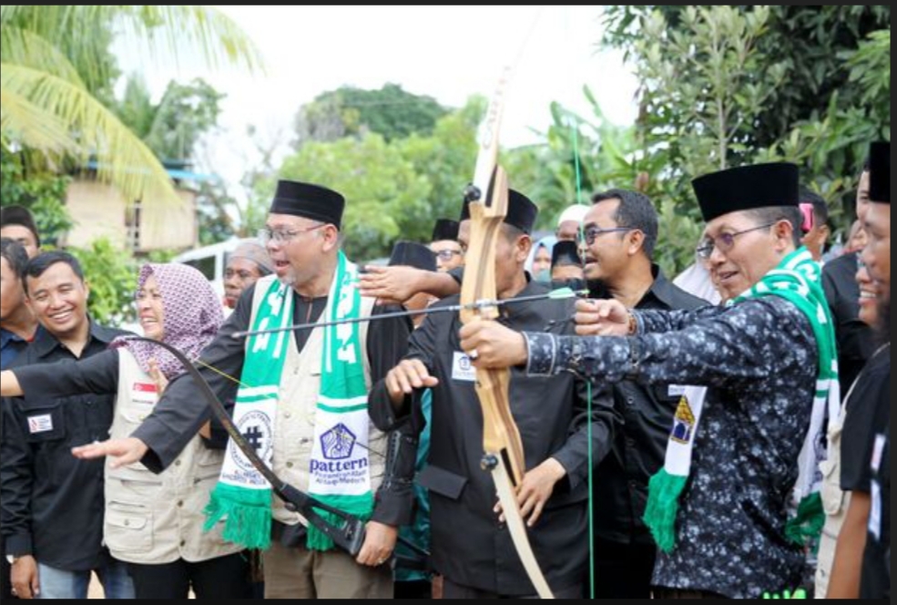 Wakil Wali Kota Batam Amsakar Achmad secara simbolis meresmikan usaha pesantren dengan melepas busur panah. Foto: INIKEPRI.COM