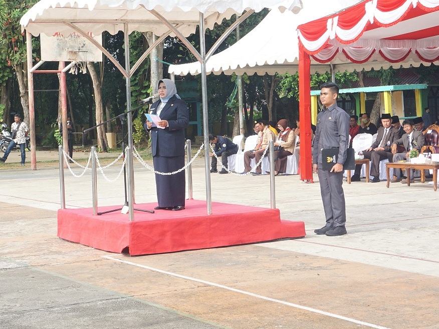 Wali Kota Tanjungpinang Rahma saat membacakan sambutan Menteri Pemuda dan Olahraga Republik Indonesia (RI), Zainudin Amali, dalam upacara bendera memperingati Hari Sumpah Pemuda ke-94 tahun 2022, yang digelar Pemerintah Kota (pemko) Tanjungpinang, di lapangan Pamedan Ahmad Yani Tanjungpinang. Foto: Kominfo Tanjungpinang