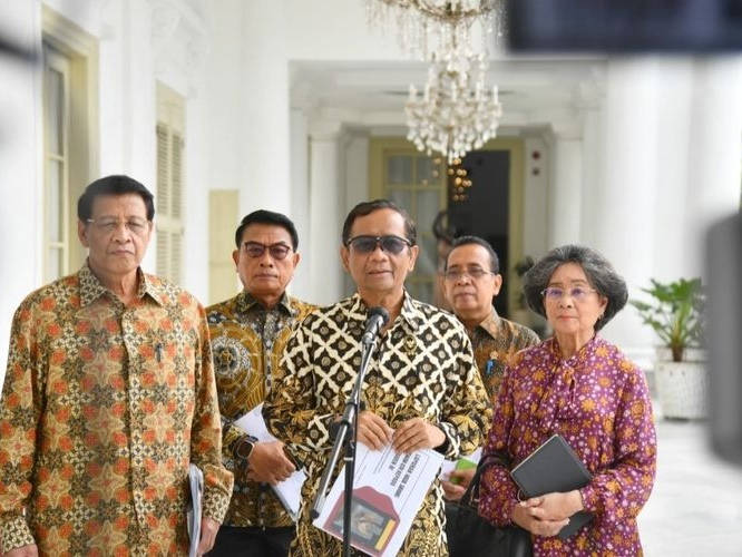 Ketua Dewan Gelar, Tanda Jasa, dan Tanda Kehormatan Mahfud MD memberikan keterangan pers di Istana Kepresidenan Bogor, Jawa Barat usai bertemu Presiden Joko Widodo pada Kamis (3/11/2022). Foto: dok.Sekretariat Presiden