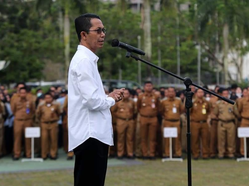INIKEPRI.COM – Wakil Wali Kota Batam, Amsakar Achmad memimpin langsung upacara apel pegawai di lingkungan Pemko Batam, yang rutin dilaksanakan setiap awal bulan.