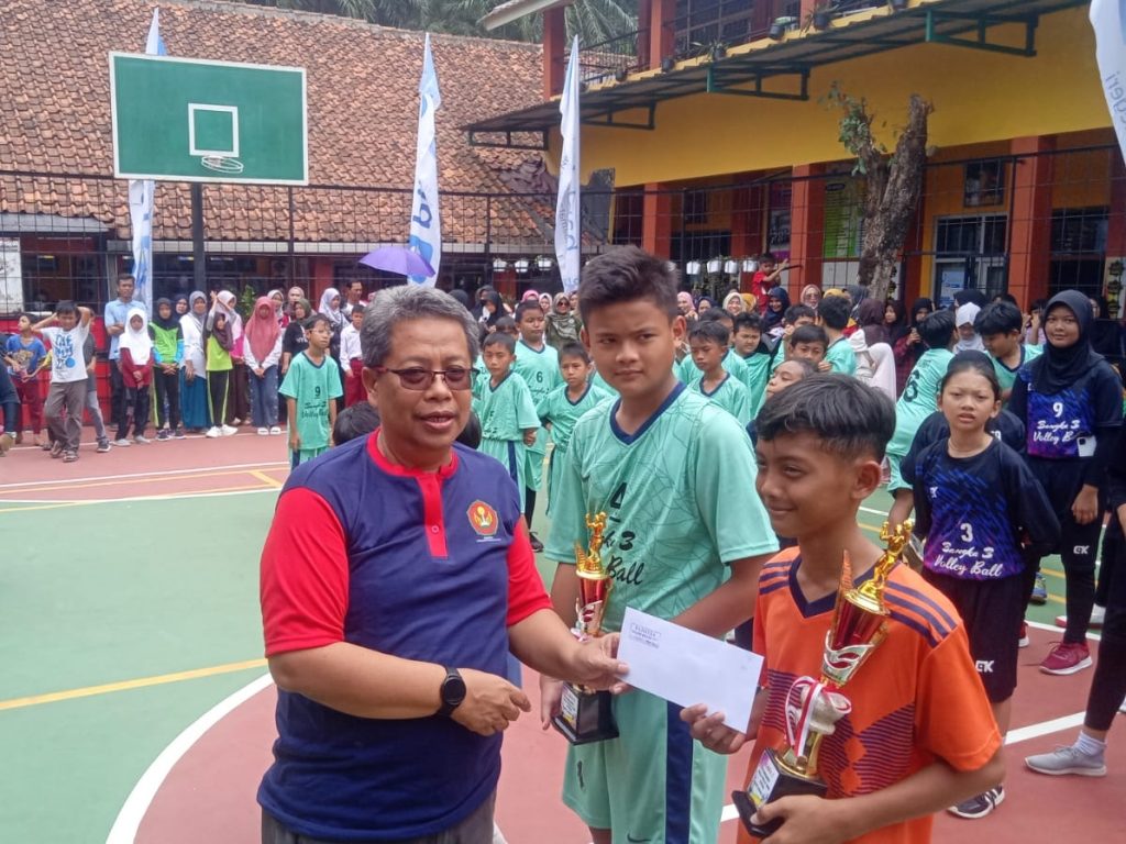 Pemberian hadiah kejuaraan turnamen bola voly mini SDN BANGKA 3 kepada para juara diserahkan oleh Kabid SD Dinas Pendidikan Kota Bogor Rudiansyah disaksikan oleh Pengawas Kecamatan Bogor Timur dan Ketua Forum Kepala Sekolah se-Kecamatan Bogor Timur