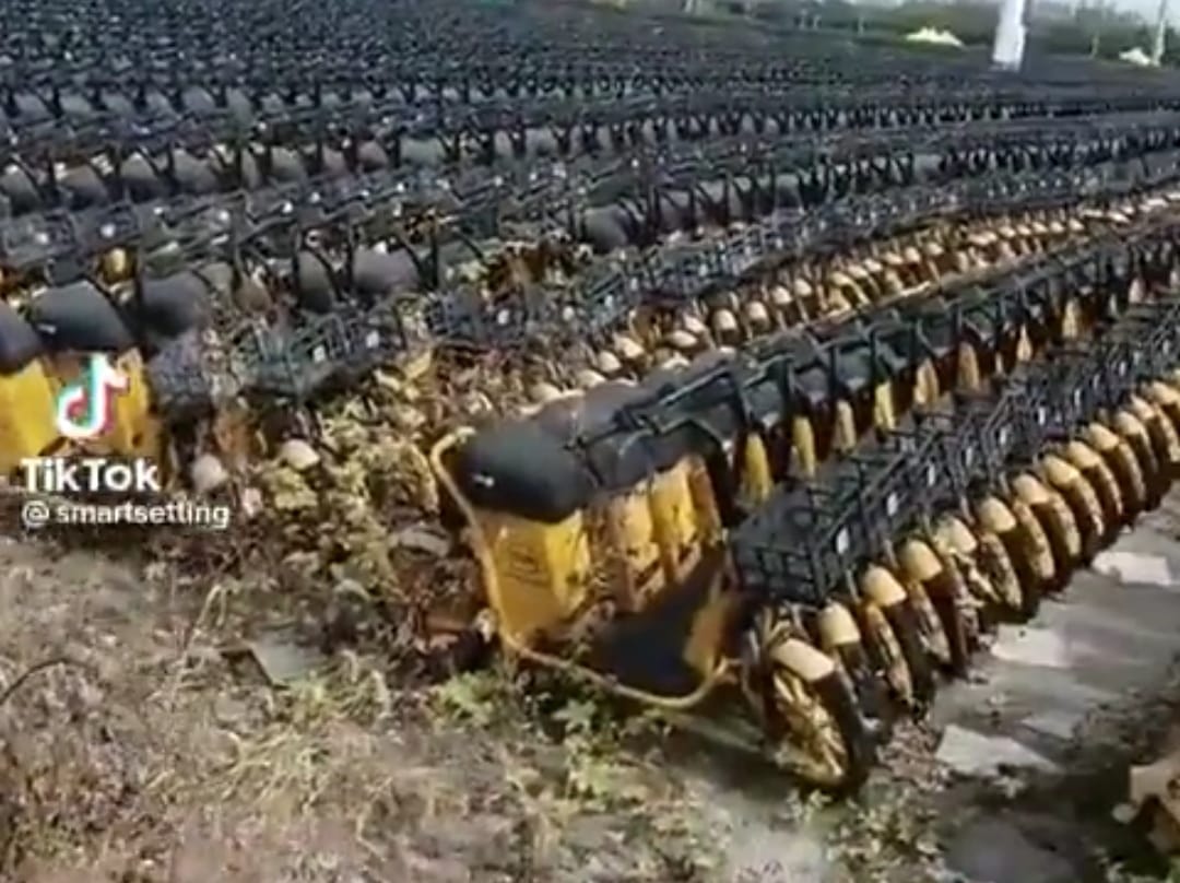 Video di Twitter itu memperlihatkan kelebihan produksi skuter listrik yang dikelurkan Mobike.