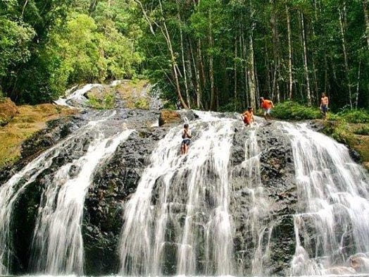 Hal yang membuat kita takjub adalah air terjun ini memiliki lima tingkat. Disini juga ada kolam renang yang luas.