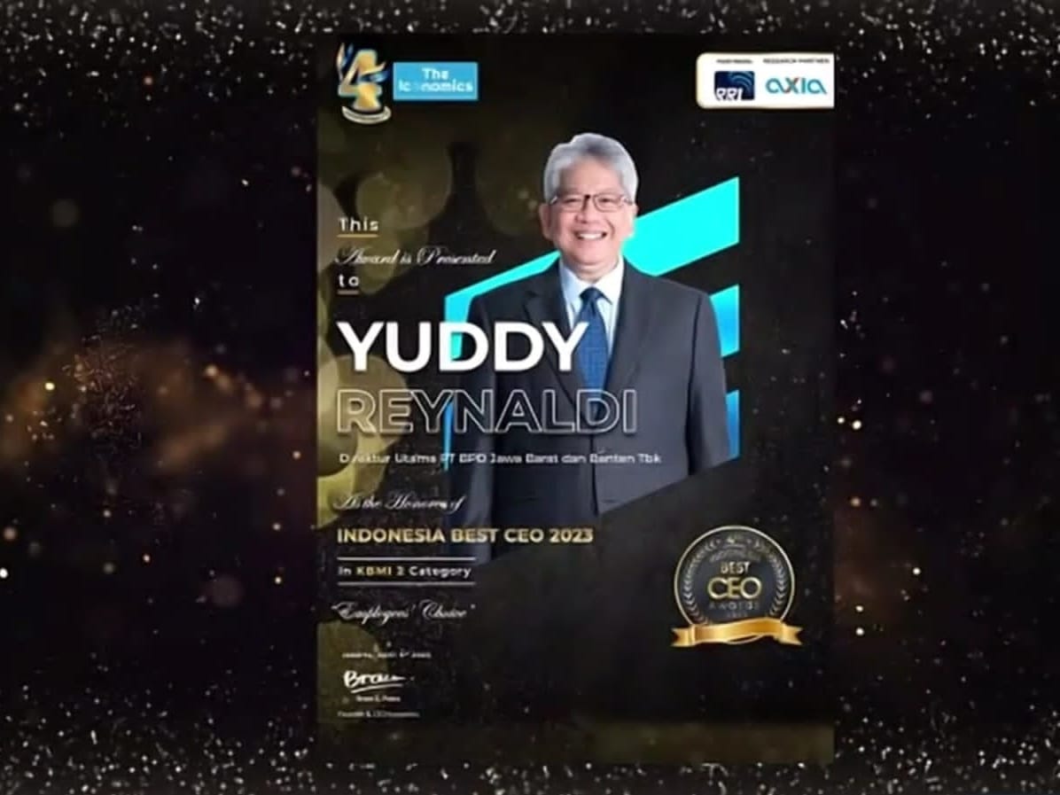 INIKEPRI.COM – Direktur Utama bank bjb Yuddy Renaldi menyabet predikat Best CEO 2023 in KBMI 2 kategori Employees’ Choice. Penghargaan tersebut dianugerahkan oleh The Iconomics pada Kamis 6 April 2023 di LPP RRI, Jakarta Pusat.