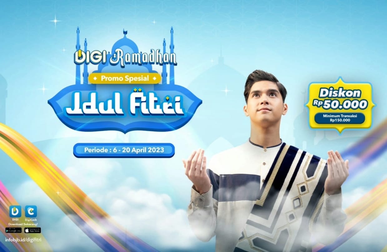 Dalam Promo Spesial Idulfitri 1444H ini, nasabah bank bjb berhak mendapat potongan harga sebesar Rp50.000 dengan minimum pembelian Rp150.000 di para merchant yang telah bekerjasama, bila bertransaksi menggunakan DIGI atau DigiCash by bank bjb.